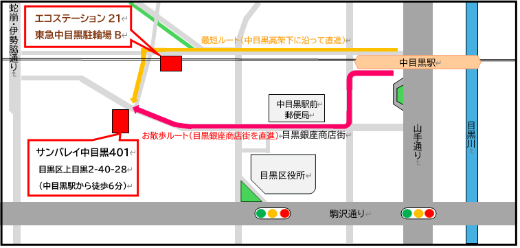 電車やバスでお越しの方:中目黒駅徒歩6分
